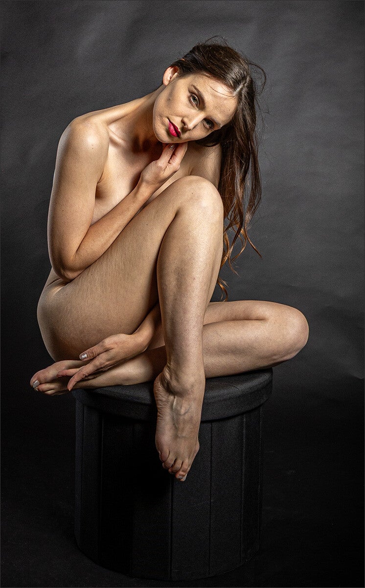 Figure Study No.1 — Composed” presents a controlled exploration of form, line, and proportion. The carefully arranged pose creates a natural flow through the frame, allowing light to define contour and texture with clarity. Rooted in classical figure study, the image highlights the compositional balance between strength, poise, and restraint.