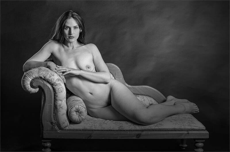 Contemplation captures a moment of inward reflection, where thought and emotion find quiet expression through pose and light. The subject’s gaze and relaxed posture evoke an intimate stillness — a sense of pause between awareness and imagination. Draped fabric softens the composition, echoing the gentle tension between vulnerability and strength. The colour rendition radiates warmth and presence, while the monochrome version distills the moment to its emotional core. Together, they explore the timeless dialogue between light, form, and the silent depth of human thought.