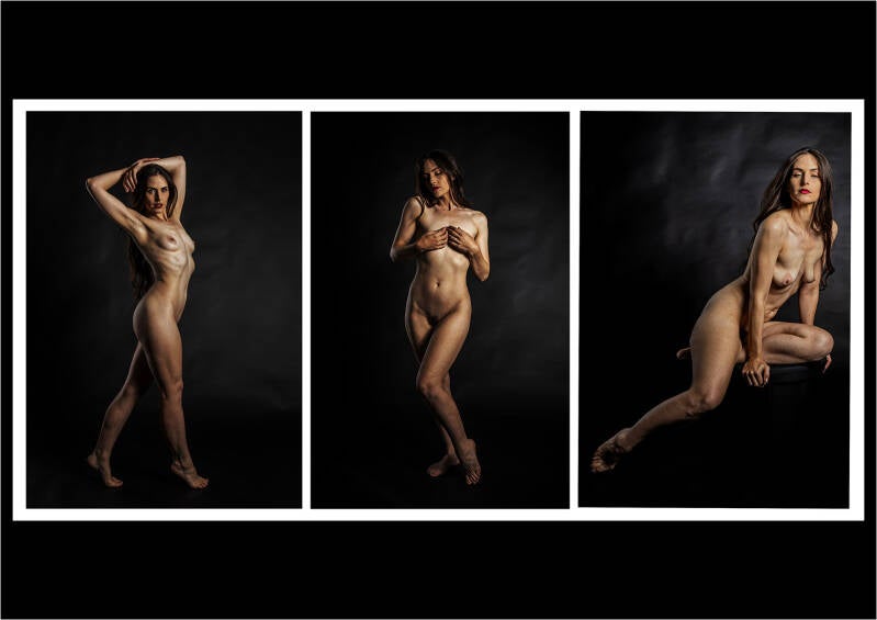 This triptych explores the timeless dialogue between form, emotion, and perception. Through subtle shifts in tone and treatment — from monochrome to colour and back again — Threefold Grace invites the viewer to see beyond the physical and into the emotional essence of the subject. The repetition reveals how light, texture, and expression transform within each frame, suggesting that grace is not a single moment, but a continuum — fluid, evolving, and quietly powerful.